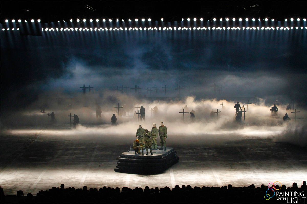 Studio 100’s Frank Van Laecke, Dirk Brossé and Allard Blom wanted to create the biggest Flemish musical ever in memory of the First World War. The venue they chose was the Nekkerhal, and the production required a complete moving set, including the grandstand. They wanted Painting With Light to be part of this enormous spectacle.