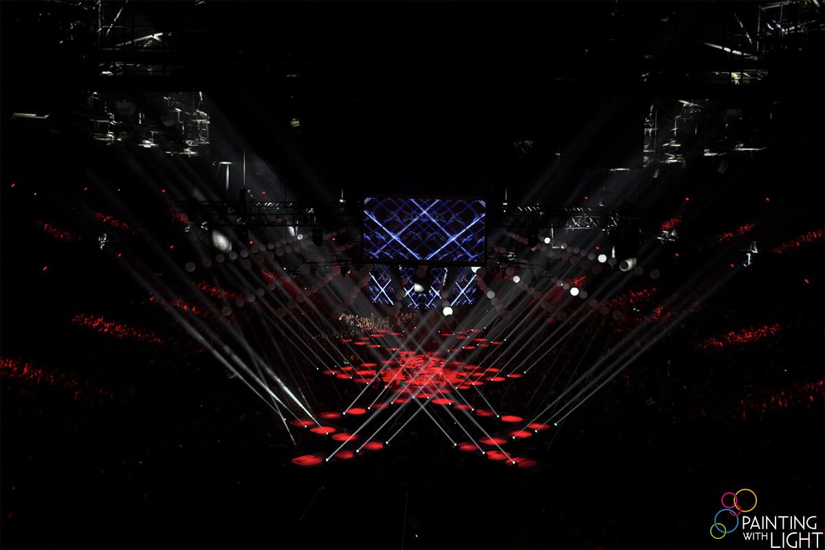 Additional to that was a ceiling of moving light balls, a mind-blowing array of light beams and a gigantic LED cube for the video projection.