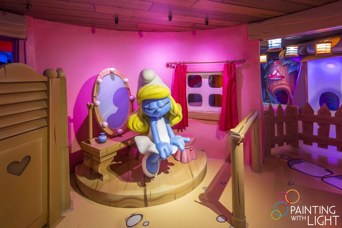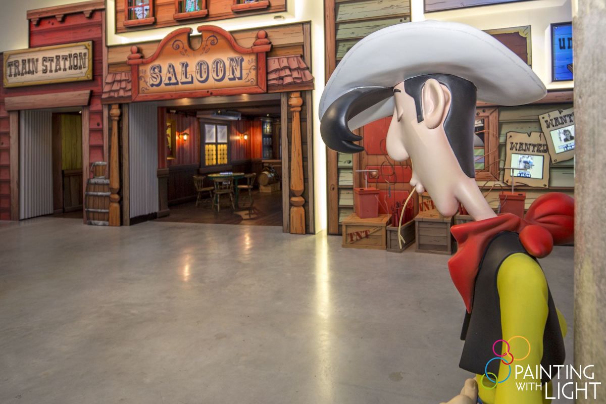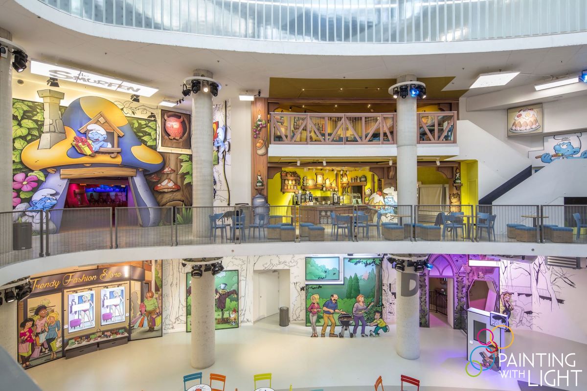 The new 6000 square metre Comics Station Antwerp indoor theme park, located in the city’s famous central station complex, was in need of lighting and video design & installation. At the heart of the attraction are Belgium’s best loved comic heroes – characters like Suske en Wiske (Spike and Suzy), Jommeke, The Kiekeboes, the globally acclaimed multi-character Smurfs, bandit-chasing Lucky Luke and a celebrity flourish with Urbanus, each with its own style and colours, requiring a different design approach.