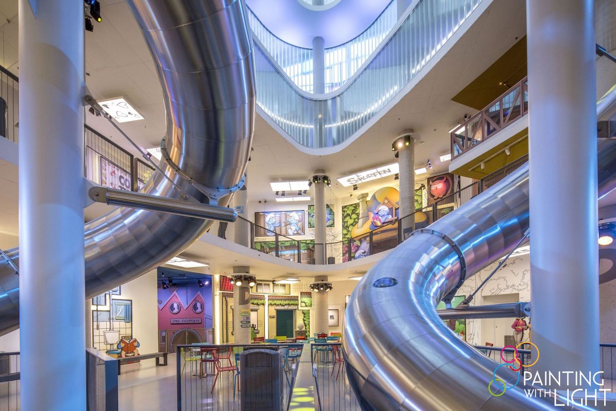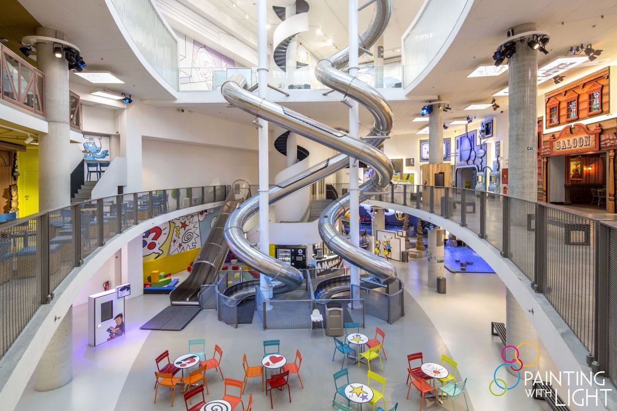 The Painting with Light team collaborated closely with Panasonic Belgium and AED on the AV elements and fully specified the lighting elements of the project, which involved nearly 1300 fixtures being used to illuminate over 60 attractions. These are spread across four stories and six zoned entertainment areas.