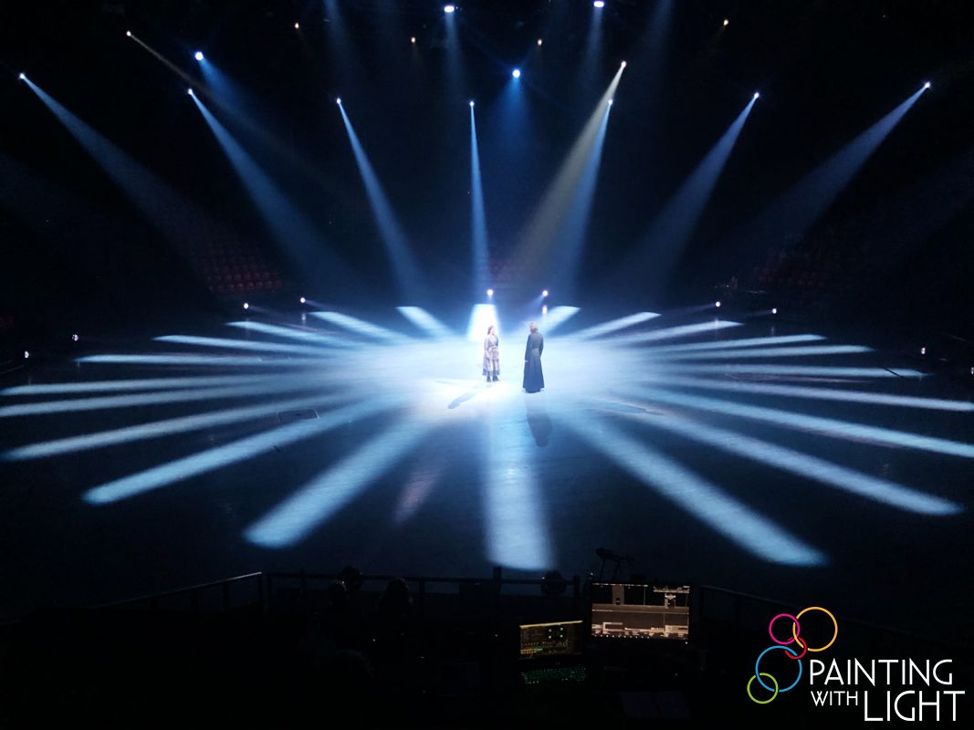 With a cast of more than 100 actors, a real ballet is organized between the story on the stage and the audience on the moving stands.