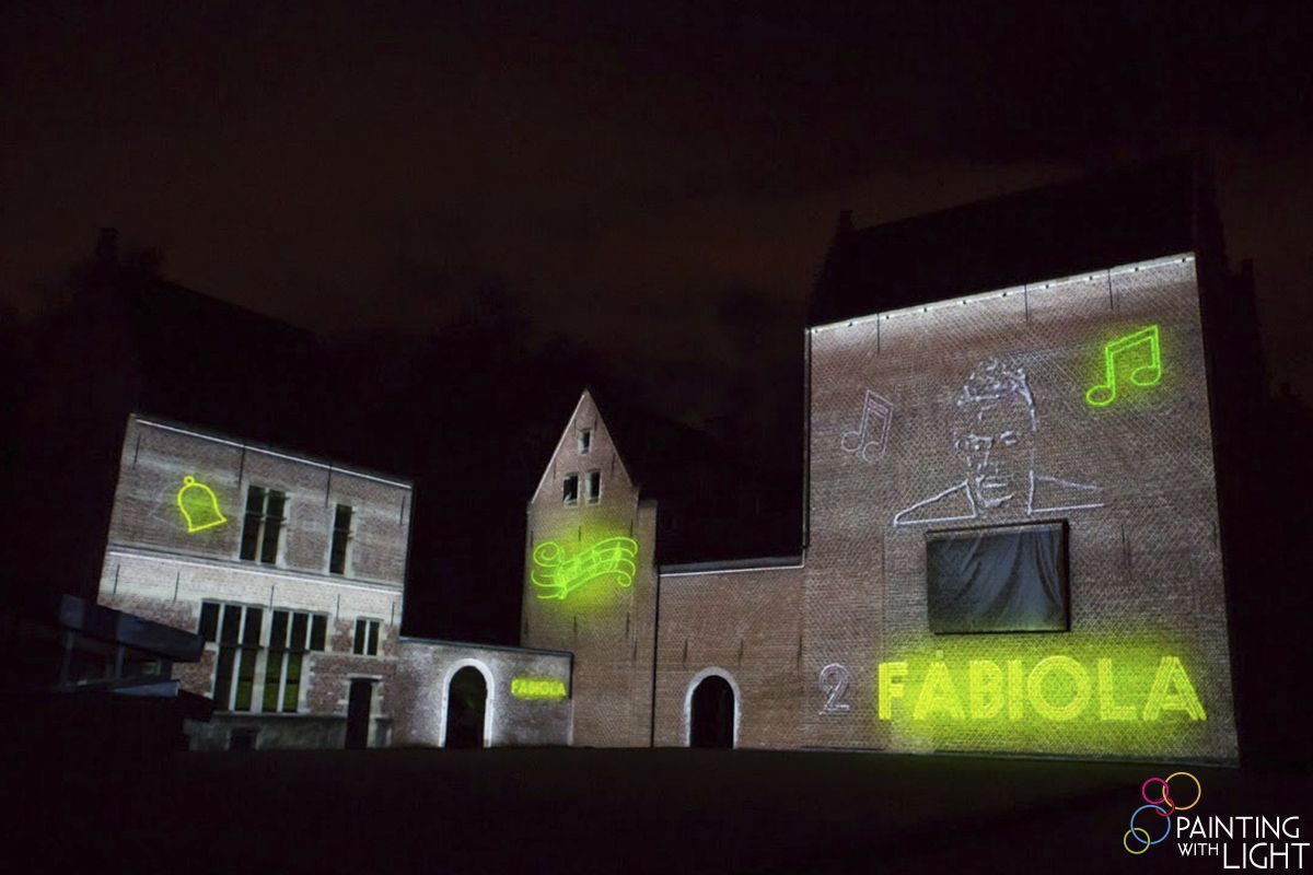 The projections are fed by two Digital Projection (DP) Titan Quartz 20K magines, which were delivered by FACE (Foundation for Audio-Visual Commerce Engineering) who are basedin Boom, Belgium, and a d3 reseller for Benelux. Both projectors are located inside Hangar 58, one pointing directly at one set of building surfaces and the other firing across at a 45 degree angle.