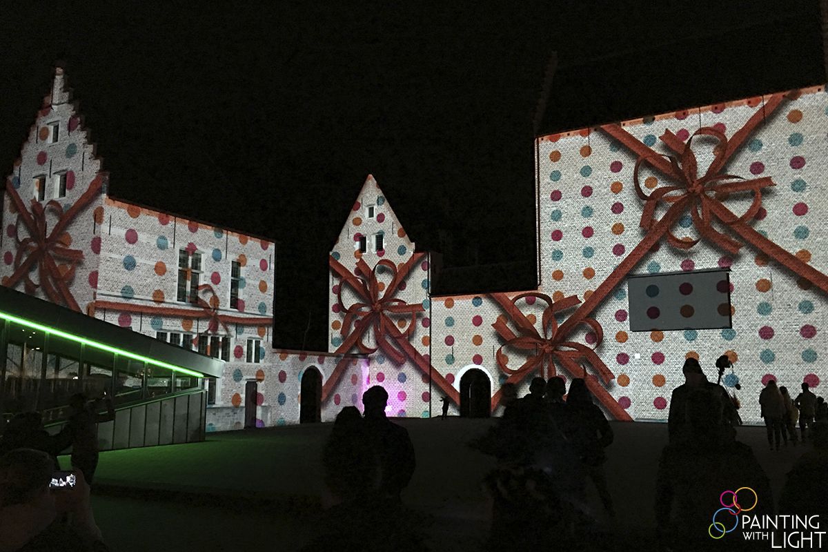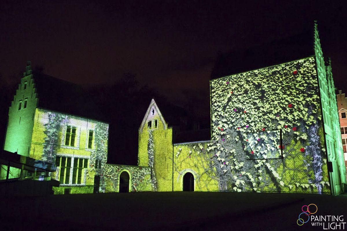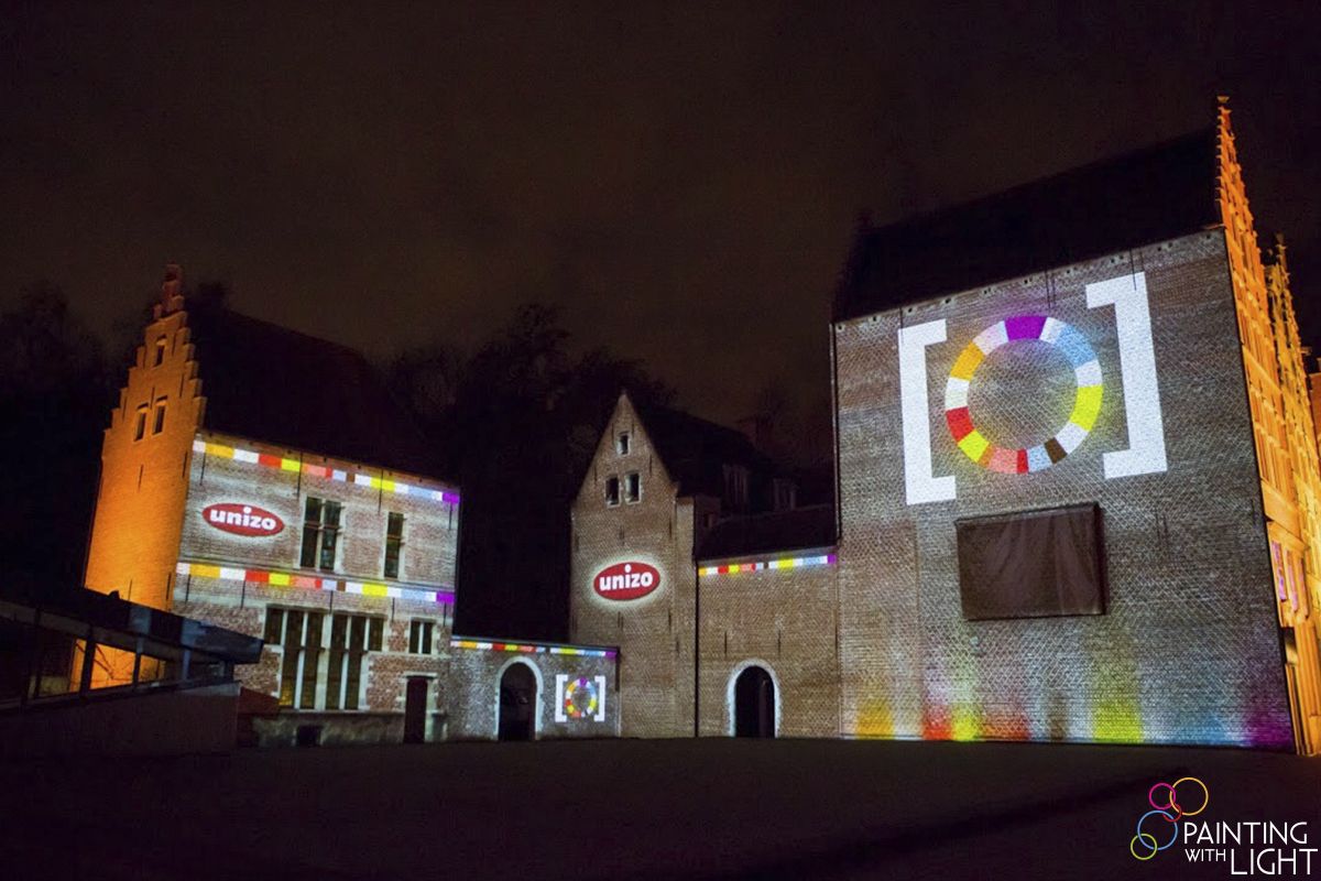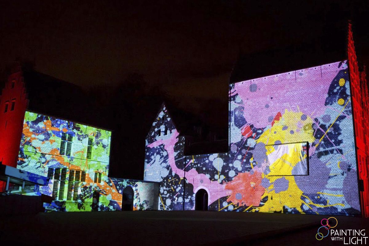 As an extra advantage for Hangar 58 we set a fixed installation for D3 mapping. It is now possible for tenants of Hangar 58 to personalize their event. We created a unique option in the Old City. Whenever you rent the hangar for an event or party you can use available settings such as loops, decors and others. This provides an extra personal and unique touch to your event. The video content itself can be adapted for a minimum cost per event. This creates a decor with added value for parties and events in Hangar 58, a value that augments experience. Guests can view the show through the large glass walls of the modern Hangar 58 in the winter and enjoy the large format show standing outside in de summer evenings.