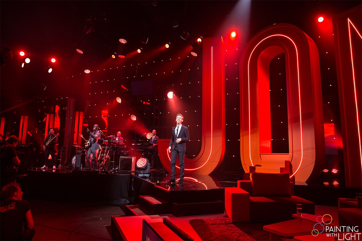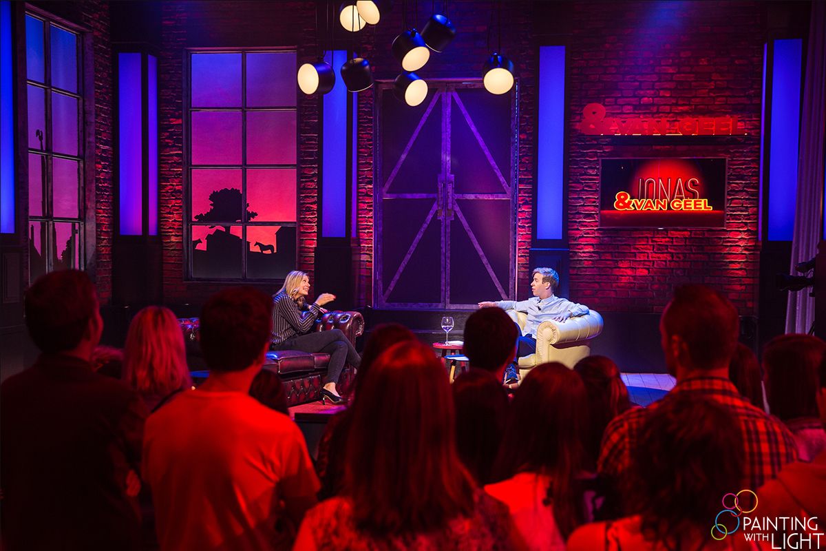 Jonas Van Geel is on fire at the moment in Belgium. After his participation in the succesful show Tegen de Sterren Op, production practice Dedsit decided to create a show around Jonas: Jonas & Van Geel. It's a late night talk show, full of humor, music and tons of popular guests. They worked with Painting with Light and they asked them for a full show design.