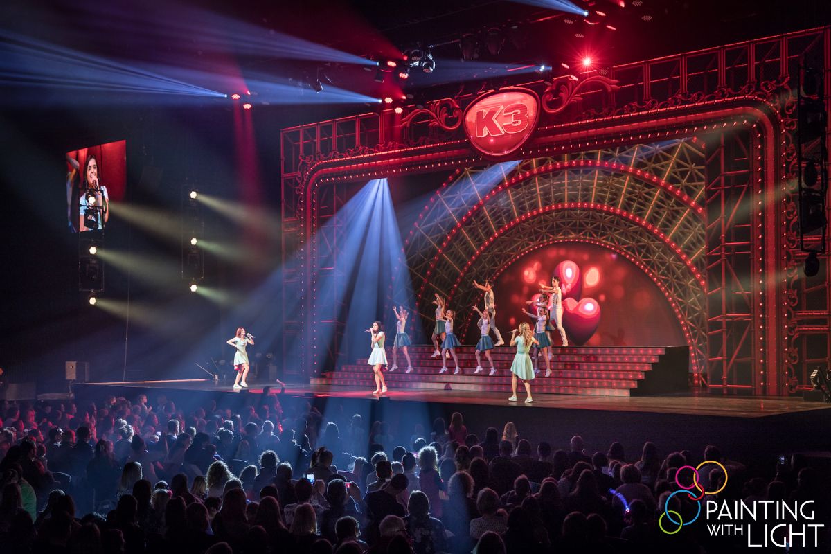 The team has designed the lighting, video and set for K3’s extensive 2018 tour, also providing lighting and video programming as well as operators on the road … all adding to the glamour, glitter and excitement of bringing the K3 concept to their young and hugely enthusiastic fanbase.