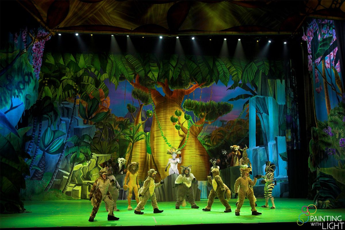 The lighting design brings atmosphere and vibrancy to the pacey musical that follows the adventures, thrills, spills and comedy moments of a group of escapees from Central Park Zoo in New York … who find themselves shipwrecked on the sandy shores of Madagascar!
