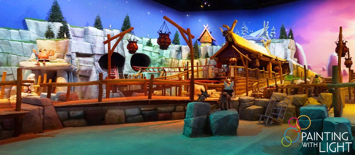 The overall space therefore had to be lit dynamically to evoke these contrasting ambiences, with the warmer glow of snow-capped mountains, chalets and ski runs on one side of the park to the forested hills and rocky terrain of Scandinavia on the other, highlighting the very different path of a Viking journey.
