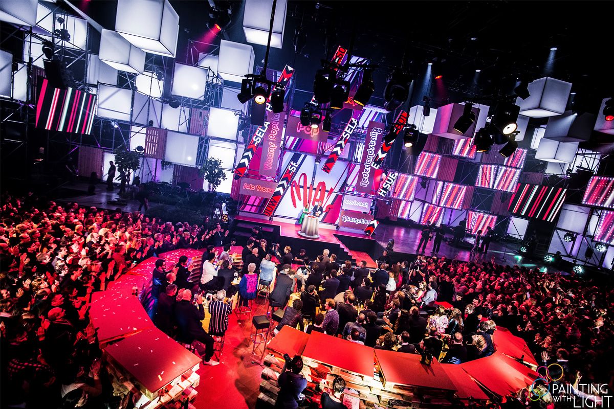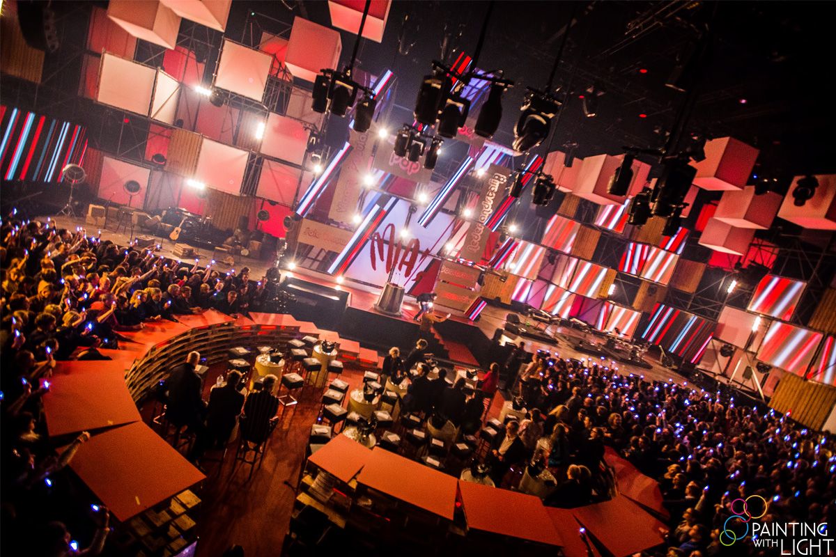 Broadcaster VRT needed a set for their annual Music Industry Award show, one of the most watched music TV shows in the country, and the brief required a complete environmental design incorporating lighting design, set and visuals. Painting With Light could deliver all four disciplines with style and flair.