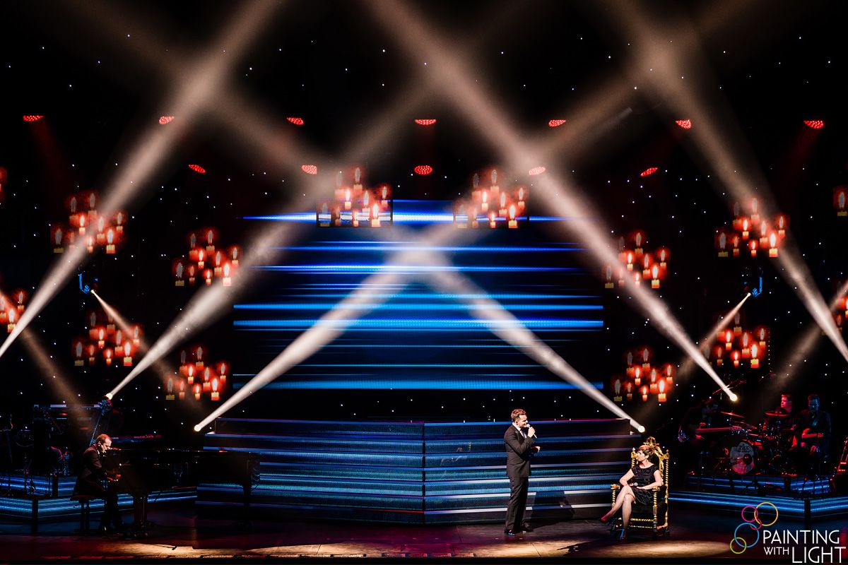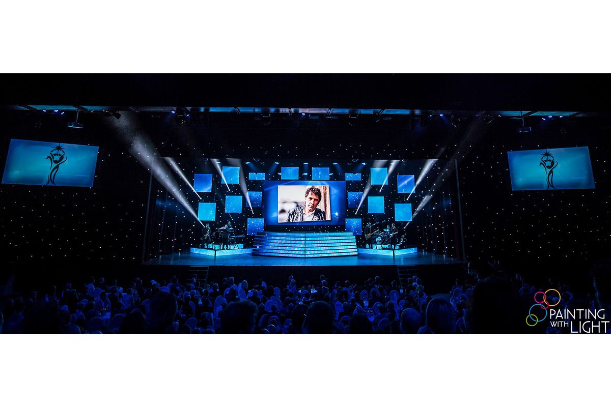 Painting With Light designed a dynamic stage environment featuring 16 smaller ‘satellite’ video screens and one big screen with a rectangular screen directly beneath it. This space also needed to accommodate live performances. Painting With Light additionally created full video content for the screens and added a classy, elegant light show. All of this was very enthusiastically received by the audience.