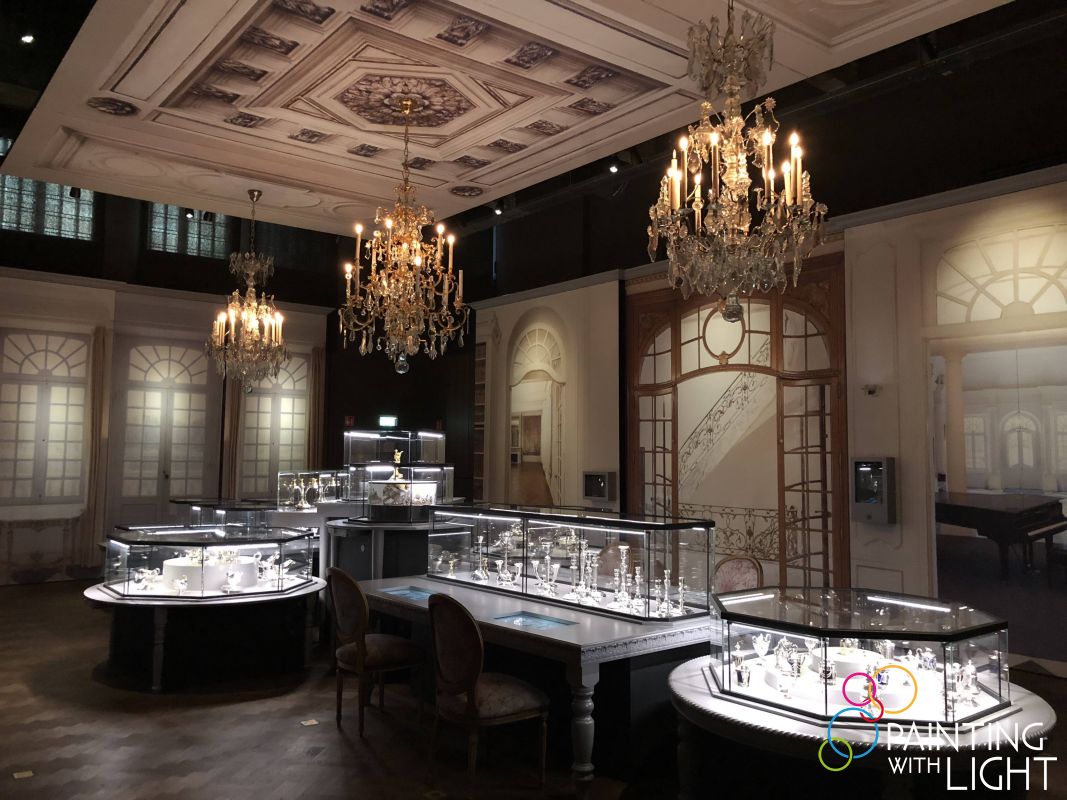 Before the recent opening of the exciting new DIVA Antwerpen Diamant and Silver Museum, Painting with Light were able to demonstrate to an assembled pre-launch press pack exactly how the exhibition would look using Virtual Reality technology. “Here at Painting With Light we have already used VR on a variety of assignments to visualise projects before their actualisation,” comments Wouter Verhulst who was project manager on PWL’s brief to manage the full package of video, lighting and VR.