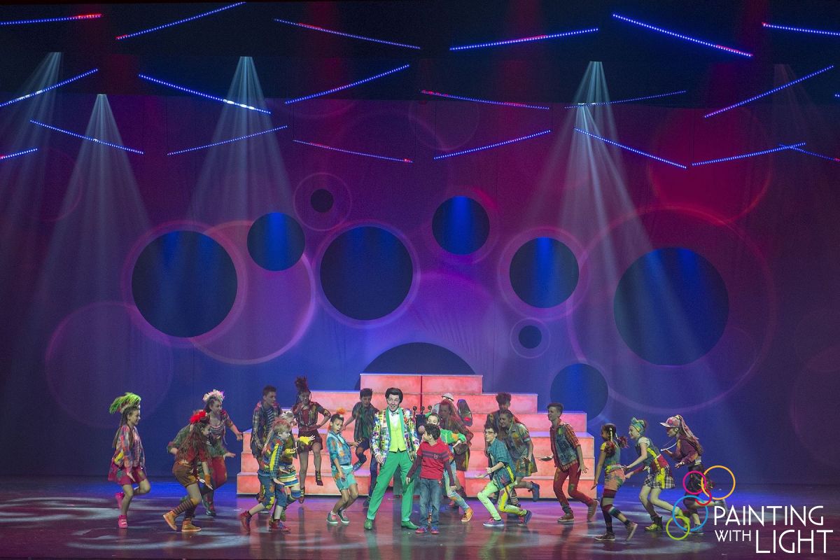 For Unidamu, 2m long SGM LED battens were integrated into the set pieces and each fixture’s 52 LED individually videomapped. These tubes, in combination with various moving lights, allowed Paco to transform the set into an explosion of colour, accentuating the upbeat musical song and dance numbers.