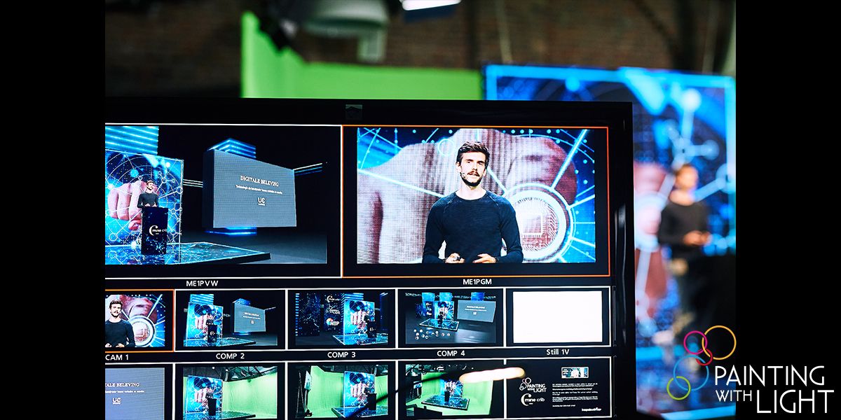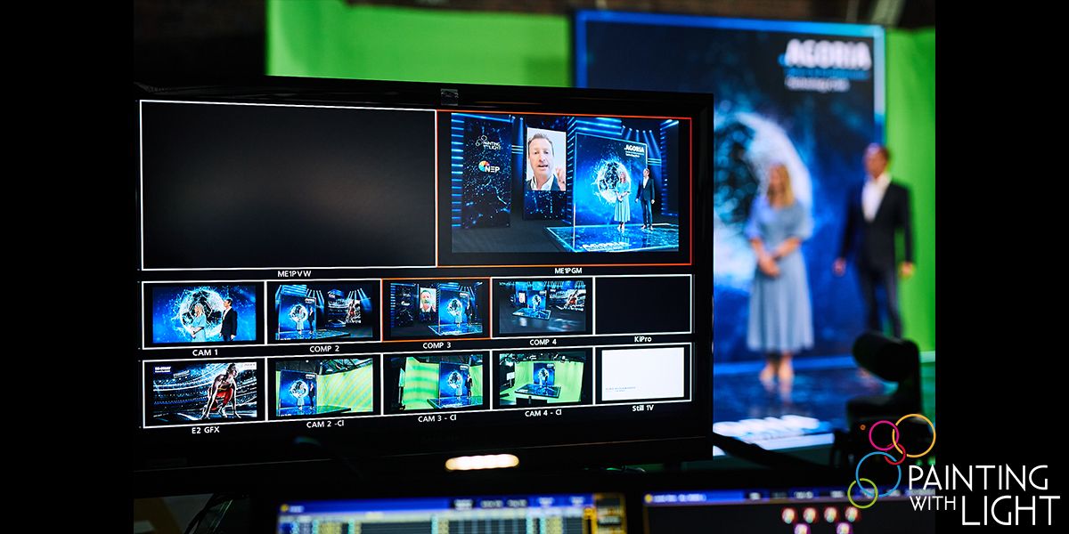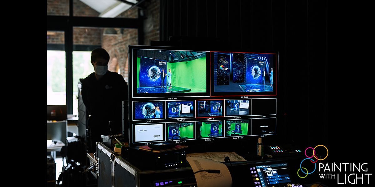 Peter Van den Bosch, Business Development Manager of Painting with Light, comments: “Audiences can be invited and join in via an assortment of different video conferencing platforms and virtually participate on-scene! They are gathered in front of the stage as live video thumbnails and shown on a large projection screen in the studio. This way the presenter can feel their presence and attendees can see the complete audience, just like at a physical event! The online audience can be streamed individually on to the virtual backscreen so the presenter can answer questions and engage in conversations.”