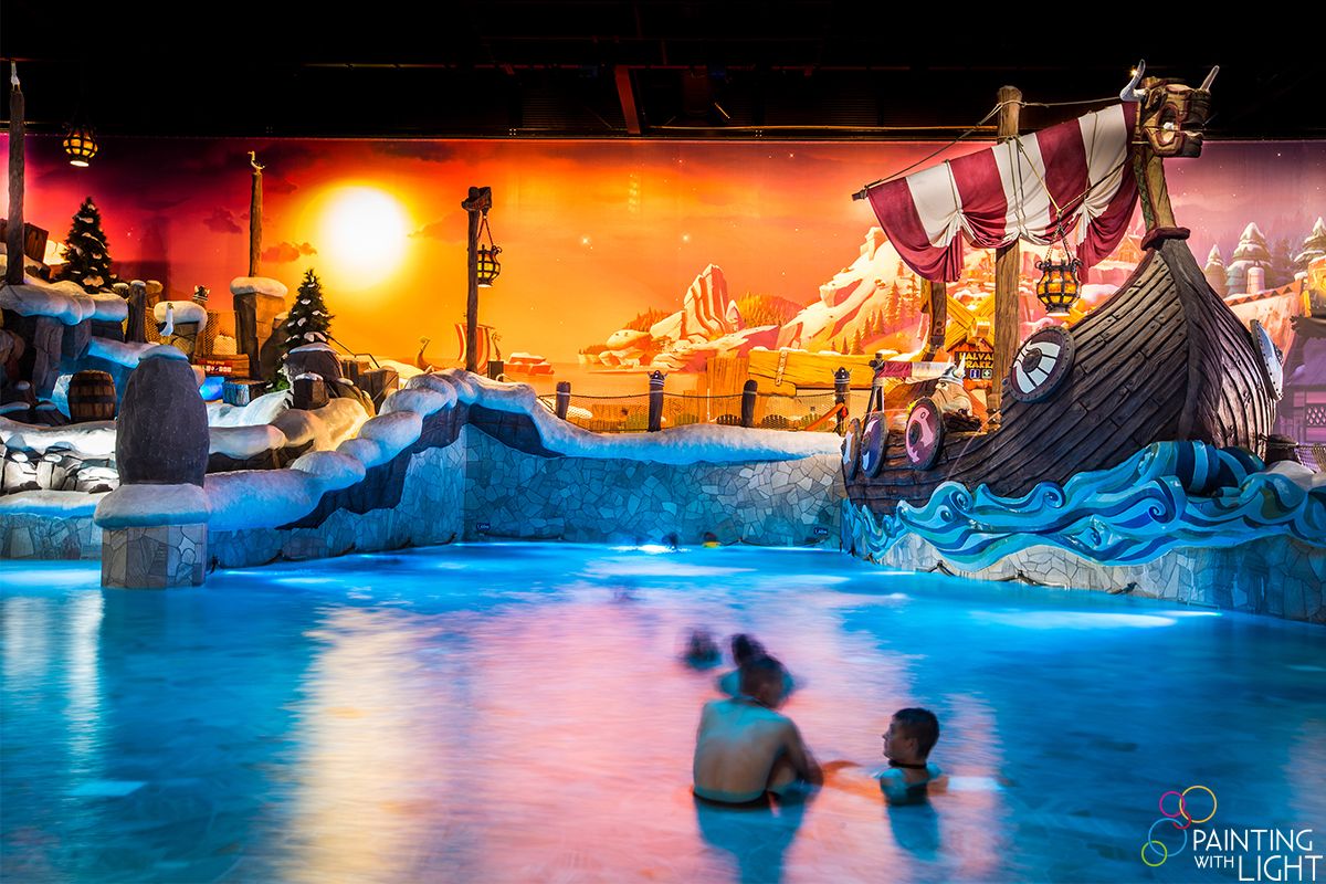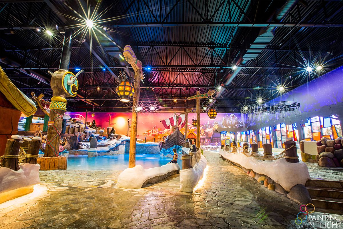 De formule van Plopsaland is wereldbekend en maakt gebruik van de meest populaire figuren van Studio100 om attracties weer te geven in hun parken. Tijdens het voorjaar van 2015 heeft Plopsaland een waterattractie gebouwd in hun pretpark in De Panne. hierbij hebben zij de hulp ingeroepen van Painting With light voor het ontwerp van hun verlichting. De opdracht was om een perfecte combinatie te vinden in het thema van Wickie The Viking, samen met een disco-gevoel in het Olymisch bad.