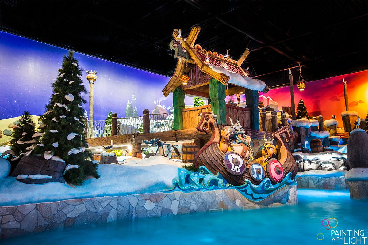 Aangezien Wickie The Viking zich voornamelijk afspeelt in een Winterse setting koos Painting With Light om te werken met subtiele lichtbronnen. Ze hebben wat extra lichteffecten toegevoegd aan de hand van donder en bliksem. Het doel was om een warme ervaring in een winterse omgeving te creëren. Boven het olympisch bad werd een gigantische Discoluster van LED verlichting geinstalleerd. Deze luster zorgt voor een fantastische party sfeer.