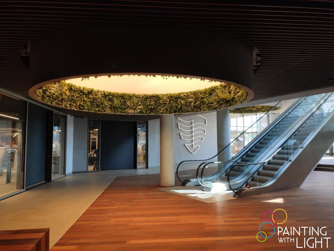 The interior lighting design was developed for the transition zone between the promenade and the basement parking. The connector has an escalator and a lift zone to move from the ground floor to the basement level. The basement level comprised of shops alongside. We developed the intention of a skylight effect in the transition zone, along with fulfilling the required lighting levels as per standards. The project was executed by Janssen.