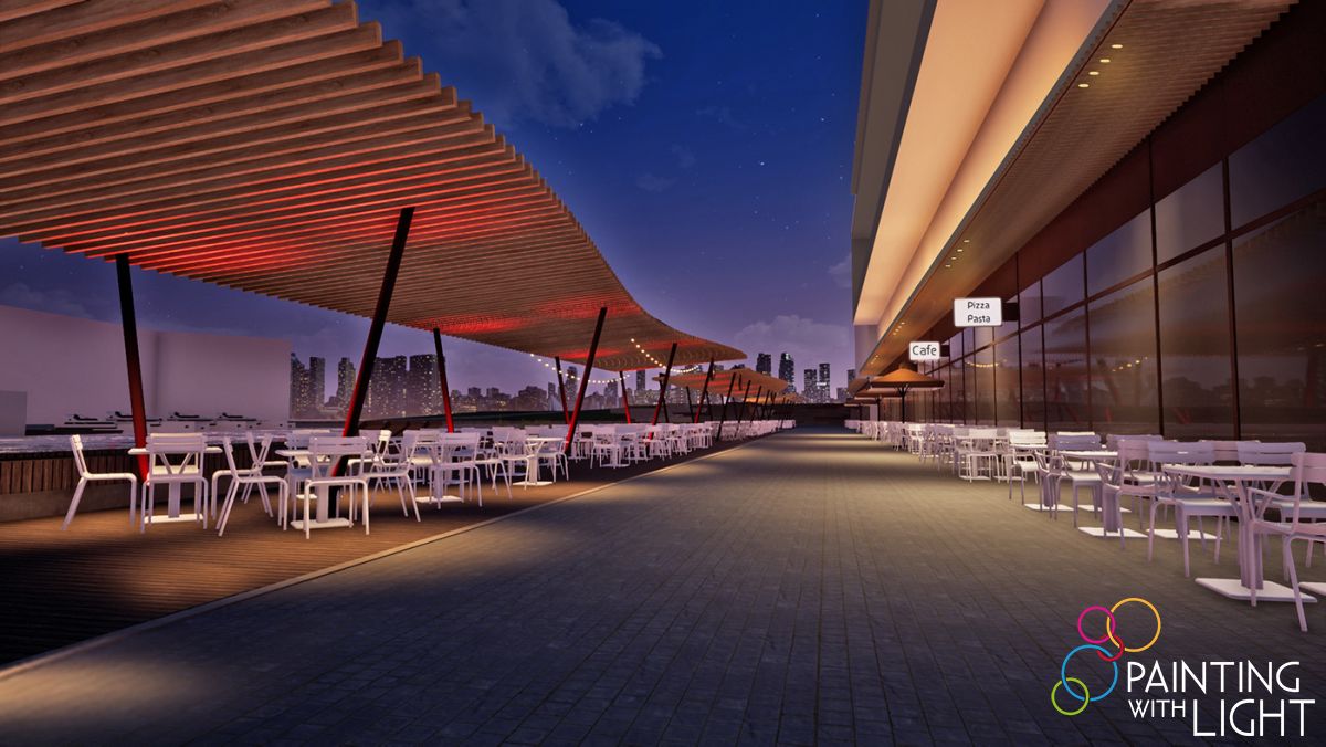 Lighting design for the exterior was developed for the front walk through and sit-out areas of the restaurants. The promenade hosts many multi-cuisine restaurants and bars and has become the newest hub of social dining and gathering during evenings. The project was developed and executed in collaboration with Fluvius.