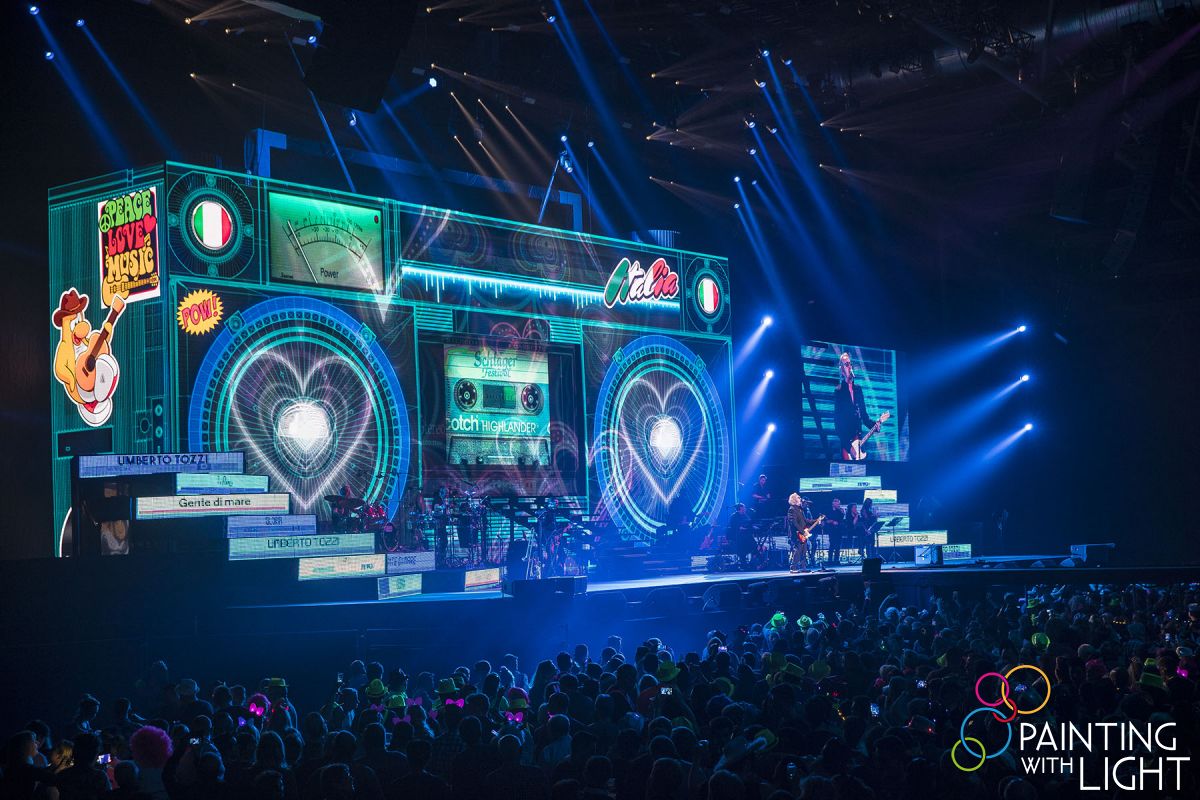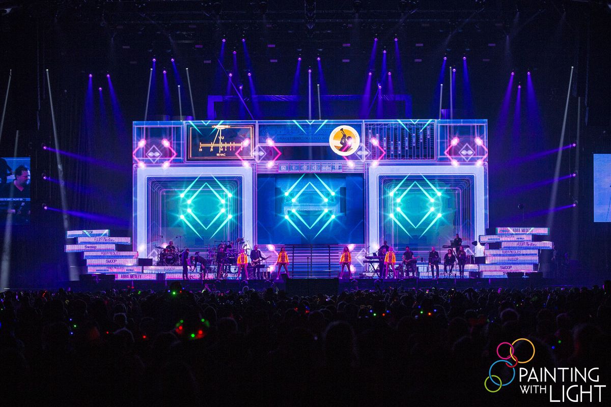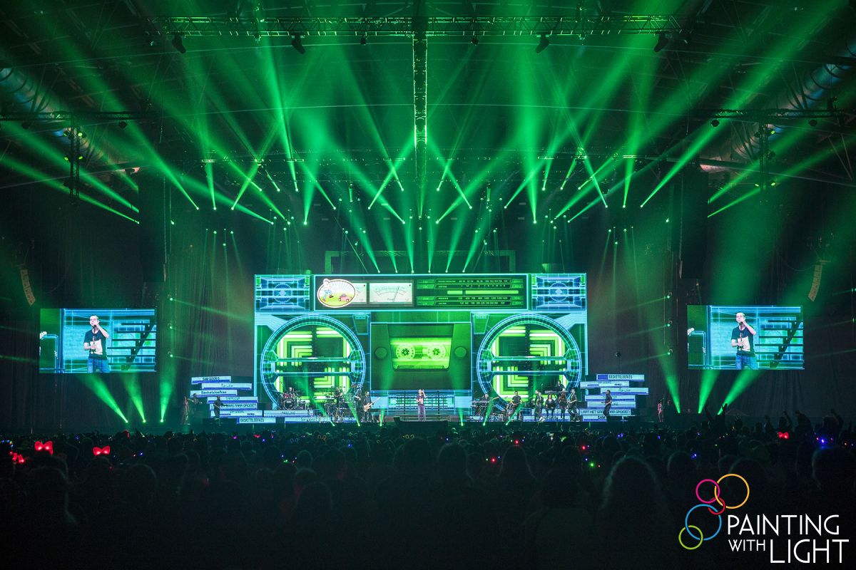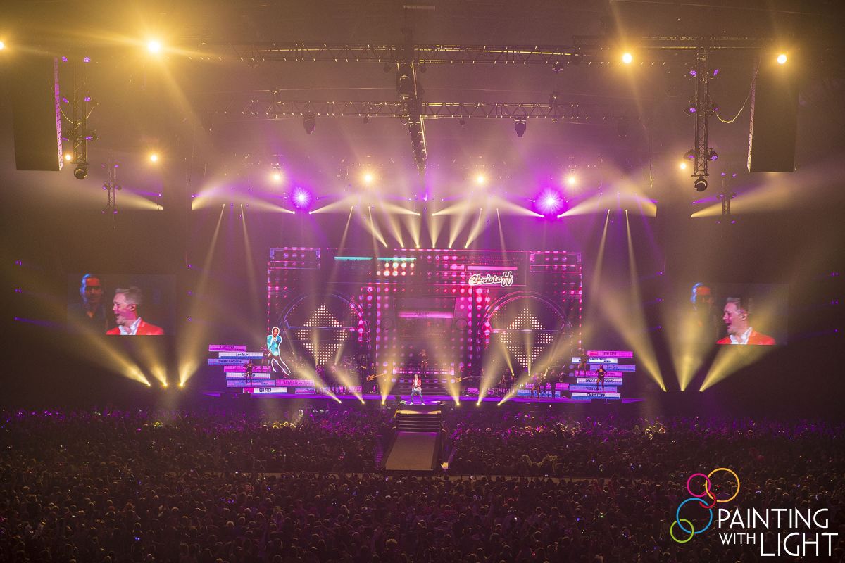 The challenge was to produce a flexible visual environment for a lively, fast-paced show featuring multiple artists, for which the Painting with Light team also used their studio in Genk for three days of intensive pre-visualization and programming.