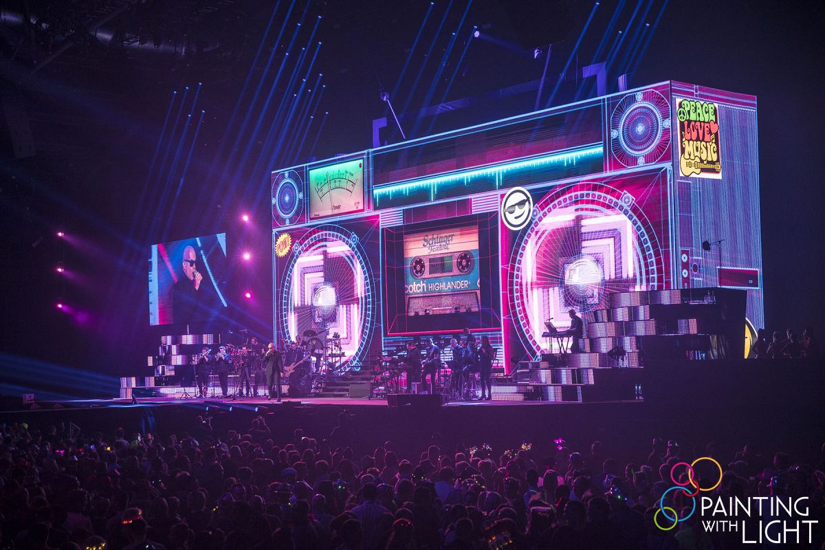 Luc Peumans and the team from Painting with Light redefined the iconic boombox, presenting this historic music making device in a fresh, new, digital dimension as the set centrepiece for Belgium’s 2018 Schlagerfestival, staged in the 14,000 capacity Ethias Arena in Hasselt.